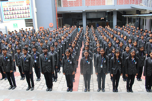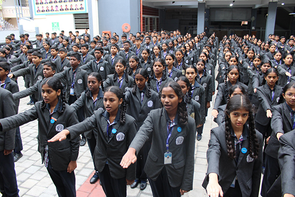 The school assembly is held every day conducted by a particular class. The important conducts of the assembly are Prayer, Pledge, Thought of the day, News Headlines, Student’s talk, Teacher’s talk, Birthday song and National Anthem.