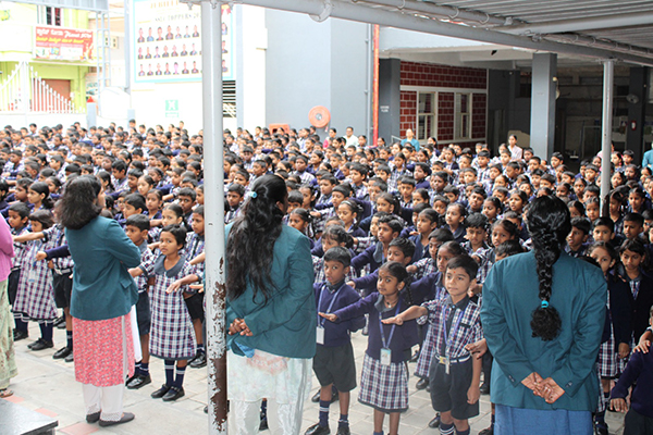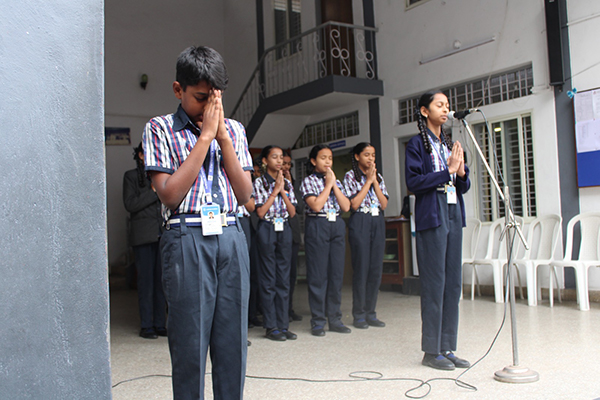 The school assembly is held every day conducted by a particular class. The important conducts of the assembly are Prayer, Pledge, Thought of the day, News Headlines, Student’s talk, Teacher’s talk, Birthday song and National Anthem.